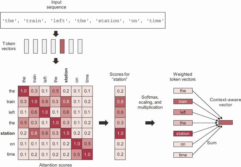 That’s exactly what you can achieve with neural attention and Transformers. You’re already familiar with the Transformer encoder, which uses self-attention to produce context-aware representations of each token in an input sequence. In a sequence-to-sequence Transformer, the Transformer encoder would naturally play the role of the encoder, which reads the source sequence and produces an encoded representation of it. Unlike our previous RNN encoder, though, the Transformer encoder keeps the encoded representation in a sequence format: it’s a sequence of context-aware embedding vectors.