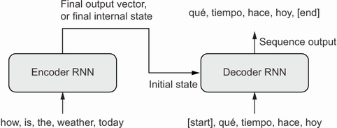 There are many ways this toy model could be improved: We could use a deep stack of recurrent layers for both the encoder and the decoder (note that for the decoder, this makes state management a bit more involved). We could use an LSTM instead of a GRU. And so on. Beyond such tweaks, however, the RNN approach to sequence-to-sequence learning has a few fundamental limitations: